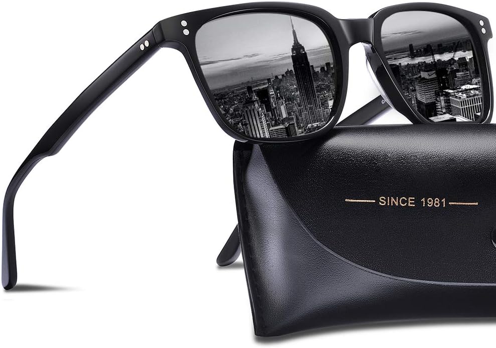 - We attempt to feature the best savings for your eyewear preferences but classic designer ones! Package included: 【1* Classic Square Sunglasses】 【1* Soft Lenses Wipe】 【1* Polarization Testing Card】【1 Year Free Replacement in case any defect】【1* Leather Case which is reinforced on the inside】 【1* Another Hard Protection Box】
